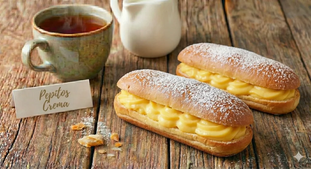 Hojaldre laminado crujiente con relleno de crema o chocolate.