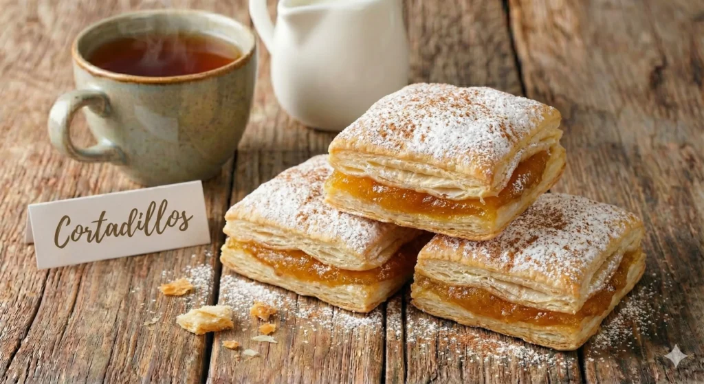 Piezas cuadradas de masa hojaldrada con un suave relleno de cidra (cabello de ángel) y un ligero toque de canela.
